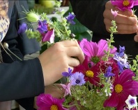 Мария РУДЫХ, преподаватель Новокузнецкого строительного техникума: «Цель данной выставки - именно пропаганда эко-стиля, который неотъемлем в нашей жизни. Мы принципиально не брали ни один искусственный цветок. Ни один импортный цветок. Все цветы выращены вручную, либо собраны в природных условиях. У нас здесь помимо цветов используются так же овощи. Букет есть с морковью, с тыквами, яблоки используем. Мох, коряги, это все наши материалы для работы».
