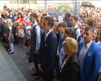 После торжественной линейки все первоклассники отправили на первый урок. В этом году к школьникам на первый урок пришли специальные гости – сотрудники ГИБДД. И первый урок начался с рассказа о правилах дорожного движения и только потом преподаватели приступили к своей работе – учить детей читать, писать и считать. В этом году за парты в Новокузнецке сели больше 50-ти тысяч детей. Почти 6,5 тысяч пришли в школу в первый раз.