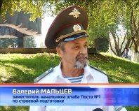 Валерий МАЛЬЦЕВ, заместитель начальника штаба Поста №1 по строевой подготовке: «С каждым годом, наоборот, это все востребованнее становится и дети все активнее, с интересом. И учителя заявляют, что после недельного несения Вахты памяти, ребят в школе не узнать. Это дисциплинирует, это взаимовыручка, взаимопомощь, это требования, высокие требования с моей стороны. Первые 2 дня они вообще шарахаются, боятся меня, а потом привыкают и вот как цыплята за курочкой, Валерий Михайлович, Валерий Михайлович».