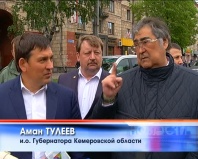 После встречи в драматическом театре Аман Тулеев вместе мэром Новокузнецка посмотрели, как идут работы по реконструкции проспекта Курако. Сейчас здесь идет демонтаж трамвайных путей, после чего ширина проспекта будет расширена до шестиполосного движения. Аман Тулеев дал поручение максимально ускорить работы: по словам главы региона "работы по реконструкции проспекта надо вести и днем, и ночью, но так, чтобы не причинять неудобства жителя близлежащих домов". 1 сентября проспект Курако должен быть полностью закончен, расширены полосы, уложен асфальт, установлены контактные сети и пущено троллейбусное движение с выходом через площадь Побед на проспект Строителей.