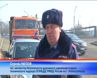 Сергей ЛЮТОВ, гос. инспектор безопасности дорожного движения отдела технического надзора ОГИБДД УМВД России по г. Новокузнецку: «Мы сейчас проверили и обнаружили нарушение труда и отдыха, связанное с тем, что водитель не совершил еженедельного отдыха 42 часа положенного. По данному правонарушению будет составлено материал, предусмотренный статьей, сумма штрафа там полагается от 1000-3000 рублей, и соответственно будет подано в трудовую инспекцию по данному предприятию информация о том, что у них такой инцидент был».