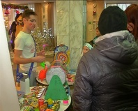 Всех гостей новогоднего праздника встречают артисты культурного центра. Этот прием особенный. Главные участники праздника - дети работников ЕВРАЗа. Для них компания организовала яркий новогодний праздник. Театрализованное представление начинается буквально с фойе культурного центра.